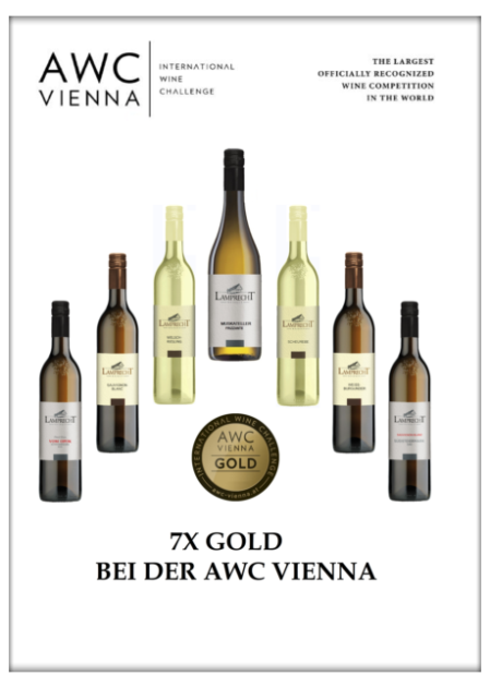 3x GOLD bei der AWC- größte anerkannte Weinbewertung der Welt ( Welschriesling, Sauvignon und Pinot blanc Leutschach)